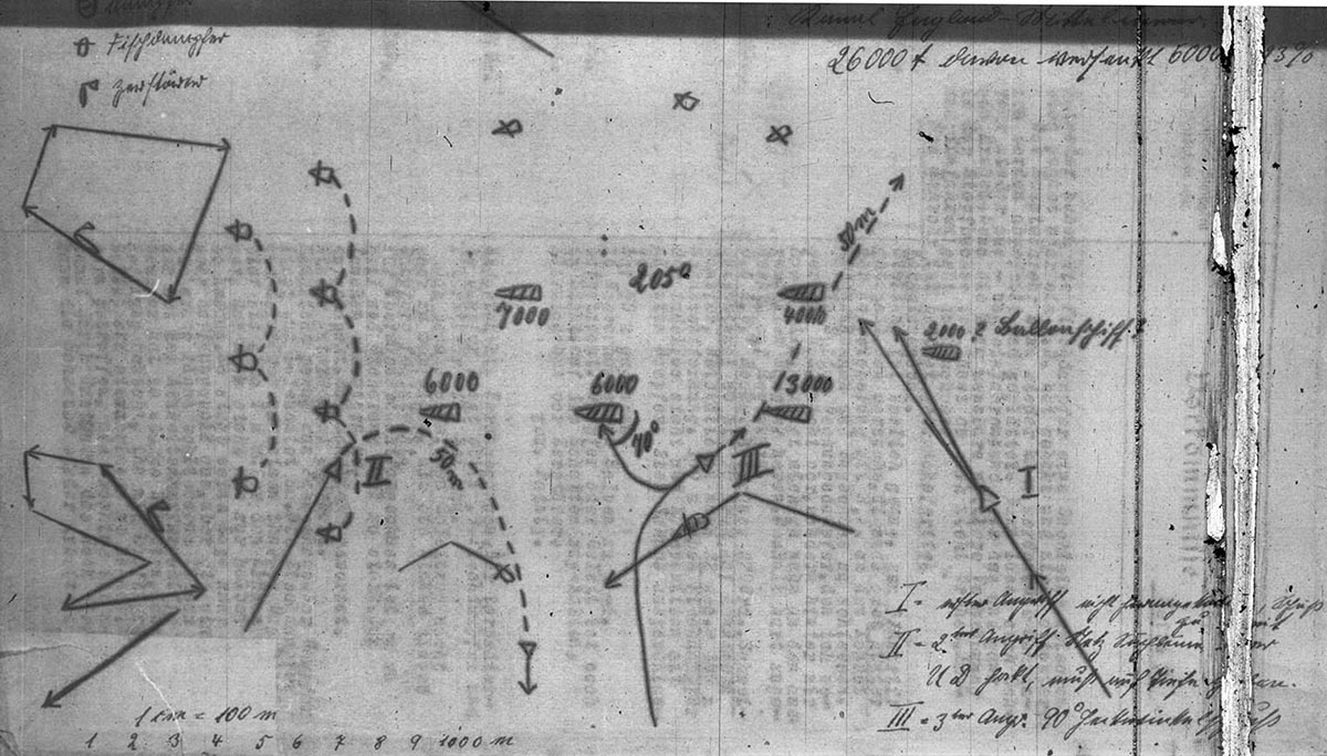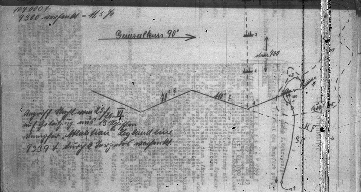 Three approaches on convoy on 30 June: I AM day attack (unsuccessful) - II PM day attack (unsuccessful, periscope damaged) |